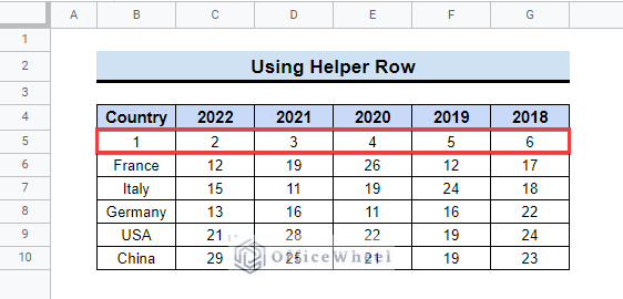 The first method you can use is to add a helper row to the dataset. You can add a new row and use HLOOKUP to search for data from the rows. Follow the steps below to do it by yourself.