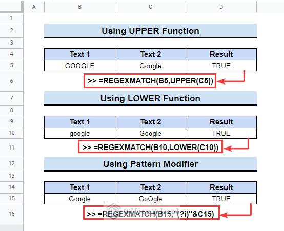 3 Simple Ways to Make REGEXMATCH Case Insensitive in Google Sheets