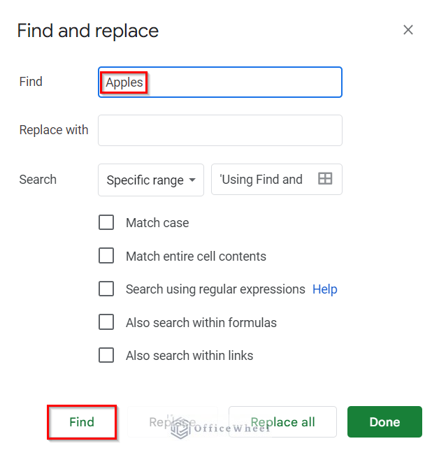 In this article, we have demonstrated 4 simple ways to search for text in the range in Google Sheets. We have also demonstrated how to locate a specific text within a cell string in Google Sheets. Please feel free to leave any suggestions or ask any questions in the comment section below. Visit Officewheel.com to explore more.