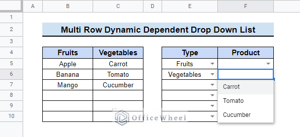 Hopefully, the methods above will be enough for you to create multi row dynamic dependent dropdown list in Google Sheets. You can check the practice spreadsheet and then practice on your own. Please use the comment section below for any further queries or suggestions. You may also visit our OfficeWheel blog to explore more about Google Sheets.